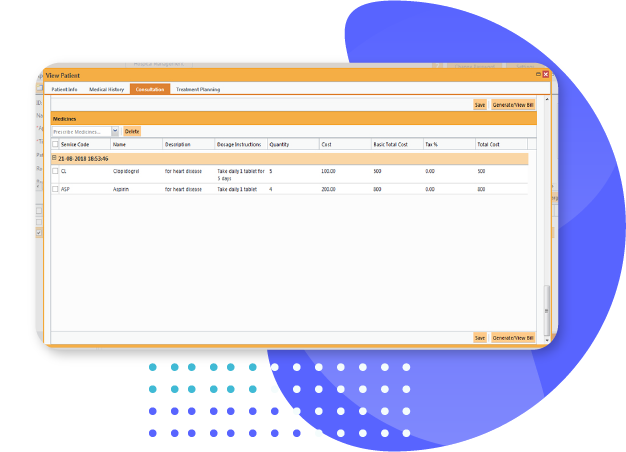 It will provide the bill status with all the information - Medicines, Treatment and particular charges up to date. We can take print out of the bill according to the need.