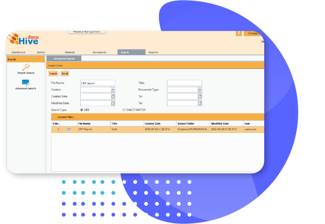 This feature will help the users to locate the documents seamlessly either by simple or advanced search options.